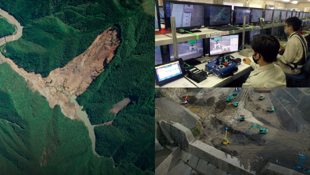 2011(平成23)年9月,台風12号による豪雨で,紀伊半島では3,000ヵ所を超える斜面崩壊が発生した。赤谷(あかだに)地区(奈良県)では,大量の崩壊土砂が川を堰き止め,湛水容量約108万m3の天然のダムを形成。当社が対策工事を担ってからも毎年のようにダム湖が越流し,斜面崩壊を繰り返した。度重なる困難の中で活路を切り拓いたのは,人々の生活を守るインフラをつくるという使命感と,全社一体となって高め続けた技術力だ。今年3月,一連の対策工事は最終局面を迎えた。気候変動に伴う豪雨災害の激甚化・頻発化が顕著となっている今,赤谷地区の10年から,国土強靭化のため挑戦を続ける当社の姿をレポートする。