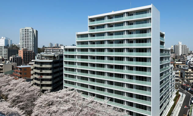 代官山エリアの高級住宅街の雰囲気を受け継いだ閑静な邸宅街区を構築しました。外観においては端正な建物デザインと167mにおよぶ緑豊かな並木道とを調和させ、新たな街の風景を構成しました。また、住戸においては、天然石などの自然素材を使用し、インテリアの上質な設えや、美しさと機能性が調和したキッチンなど、確かな居住性と空間美を追求しました。免震構造であること、4重のセキュリティであること等、安心・安全という邸宅に求められる機能も満足させています。